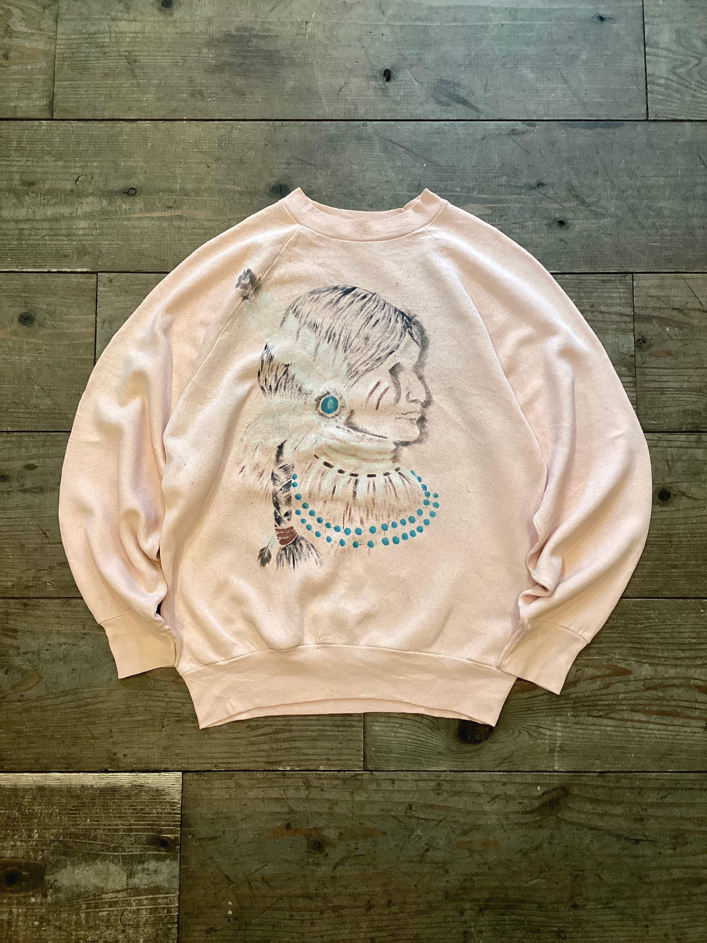 1980's "MILLER" HAND PAINTED L/S SWEAT SHIRT "INDIAN LADY"